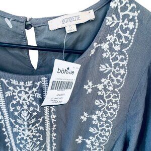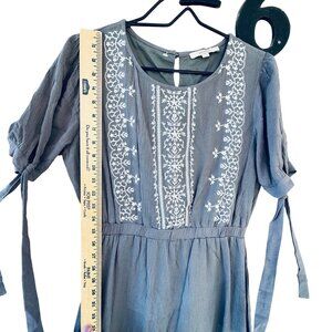 Antoinette By Bohme Embroidered Boho Dress Small Gray 100 % Rayon