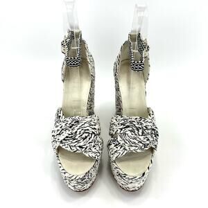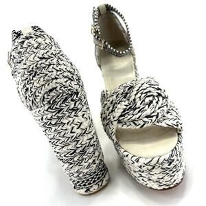 Antolina Paris Barbara Platform High Heel Sandal Sz 10 White Black Woven Cotton