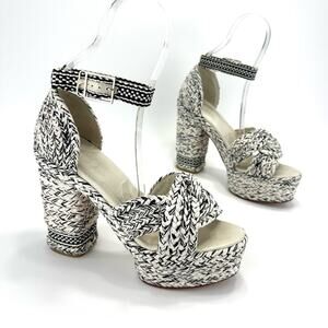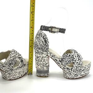 đ Antolina Paris Barbara Platform High Heel Sandal Size 10 White Black Woven Cotton Chunky Comfort Heels.