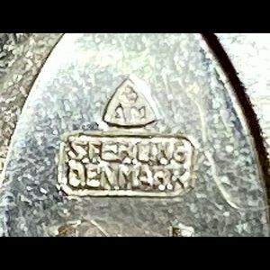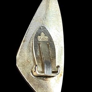 In sterling silver & colorfully enameled ear clips are triangular & signed. In very nice pre-owned condition. Just over 1.5inches in length. A. Michelsen was a premier Danish jeweler until it was absorbed by Georg Jensen in the 1980’s.