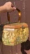 Circa 70's “Decoupage Wood Box Handbag w/ Lucite Handle” complete with pictorial scenes in the Netherlands