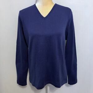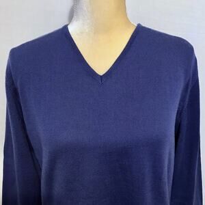 Excellent condition. Vintage V Neck Sweater for Women Size XL. Dark blue, knit construction, long sleeves, as per tag material is "100% merino wool". Necklace is not included. Pictures are part of description.
