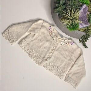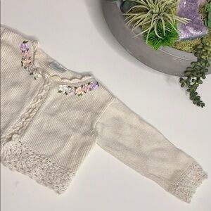 Antonella kids Ivory Knit Flower Tea Time cardigan sweater 9-12 months girls
