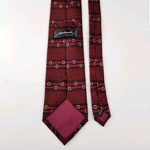 Antonia Collection 100% Silk Mens Red & White Square Geometric Print Neck Tie