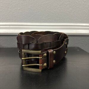 Antoniazzi Brown Leather Thick Woven Belt Statement Weave Womens Size Medium