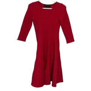 Antonino Valenti Women's Knit 3/4 Sleeve Red Skater Dress Size 4 Fit and Flare