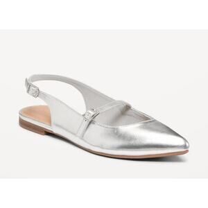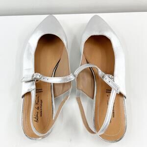 Antonio De Faria Anna Leather Slingback Mary Jane Pointed Toe Flats Silver 9