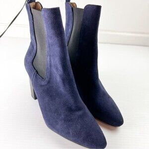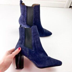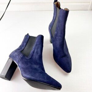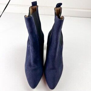 Antonio De Faria Booties womens 7.5 Blue Suede Block Heel Chelsea Boots
