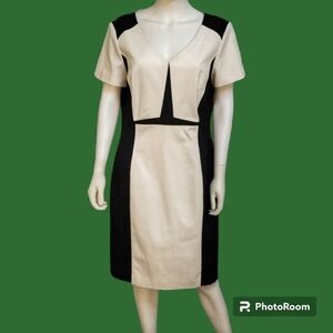 Antonio MELANI monochrome color block tailored sheath office dress Large
