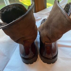 Antonio Maurizi Olimpiadi St. Moritz Montagna Depositato Boots Brown Never worn Euro size 44 (10.5 - 11 U.S.).The lower part of the boot upper is leather. The upper part of the boot upper is shearling. The shearling upper above the ankle can be laced completely or folded down