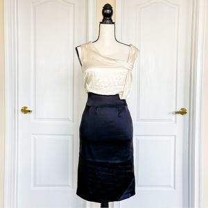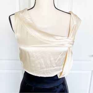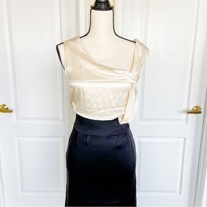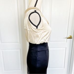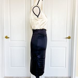 Antonio Melani 0 One Shoulder Cream White Black Contrast Silky Evening Dress