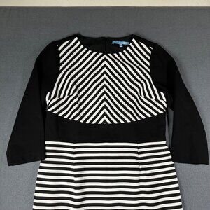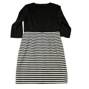 Antonio Melani 12 Black White Striped Round Neck 3/4 Sleeve Back Zip Dress