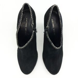 Antonio Melani Ankle Booties Sz 7M Black Heels Dante Suede Braided Trim Detail