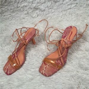 ✨ Antonio Melani | Barden Lace-Up Citrus Peach Pink Heels Strappy Sandals