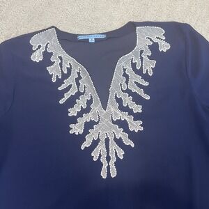 Antonio Melani Beaded Sheer Cover Up Navy Blue White Medium