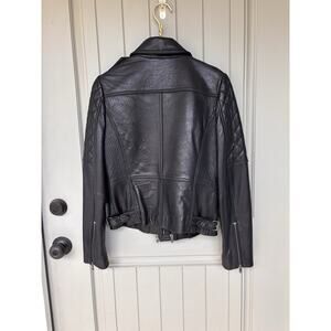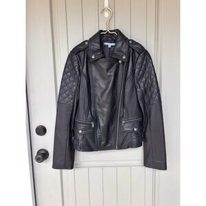 Antonio Melani Black Leather Moto Cropped Biker Motorcycle Jacket Women's Small