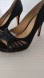 Antonio Melani Black Satin Crystal Rhinestone Bow Peep Toe Platform Pumps