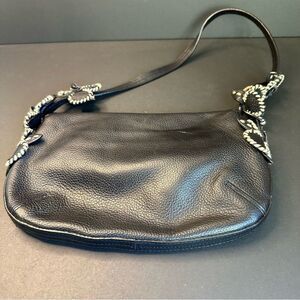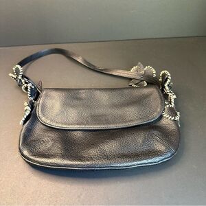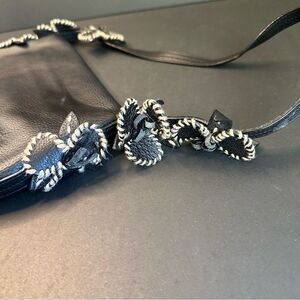Antonio Melani Black Leather Floral Embellished Bag