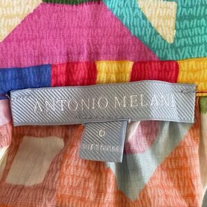 Antonio Melani Bold Multicolor Tiered Maxi Skirt Size 6 Fringed Resort Cruise. Bright primary colors in an abstract geometric pattern, 98% cotton, 2% elastane. Zipper closure. Fringe at edges of tiers. In excellent preowned condition.