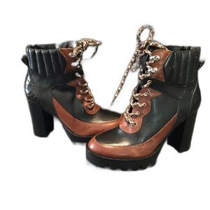 Antonio Melani Booties Women Size 8 Roasted Chestnut/Black Leather & Fabric NWOT