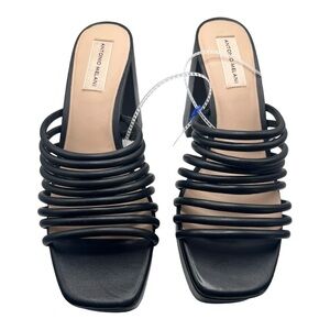 Antonio Melani Bree Tubular Black Slip On Block Heel Open Toe Sandals Size 9.5