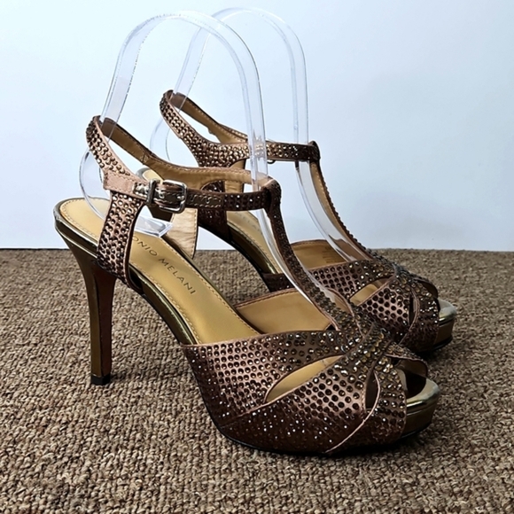 Antonio Melani Bronze Rhinestones Embellished Strappy High Heels 6.5