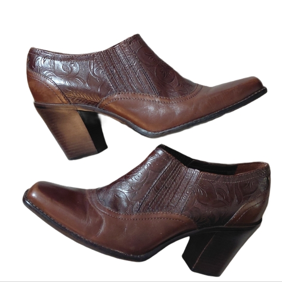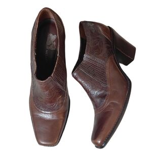 Antonio Melani Brown Embossed Leather Western Bootie Women's Size 9 Ankle Boot