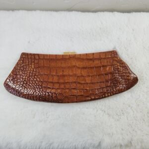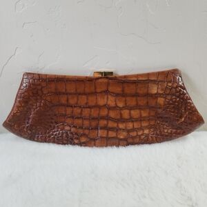 Antonio Melani Brown Leather Crocodile Croc Print Clutch
