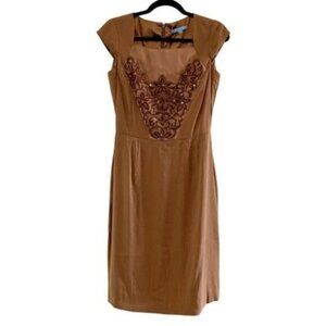 Antonio Melani Cap Sleeve Square Neck Beaded Bodice Copper Sheath Dress Size 2