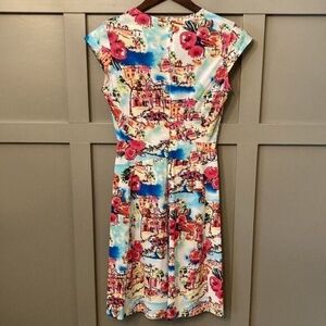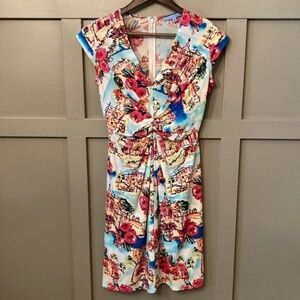 Antonio Melani Cap Sleeve Travel Floral Vacation Printed Sheath Dress Size Small