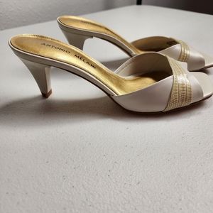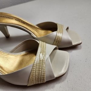 Antonio Melani Daniela Cream Rice Neutral Square Open Toe 2 Inch Heels Size 7M