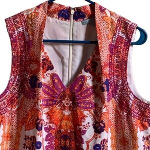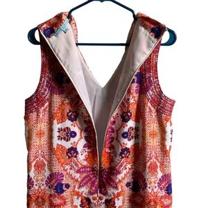 Antonio Melani Dress 10 Orange Blue Floral Sleeveless V-Neck Lined Belt Loops