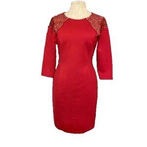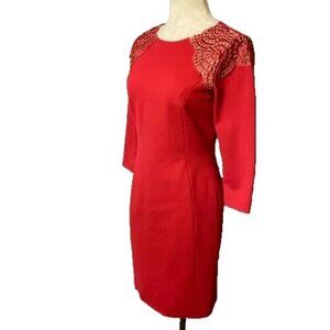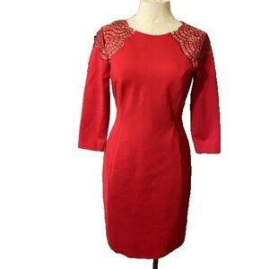 Antonio Melani Dress Red 6 Small Career Church Stretch 3/4 Long Sleeve Sheath