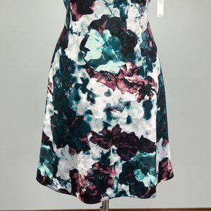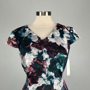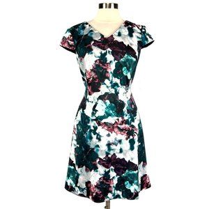 Antonio Melani Ellen Floral Printed Teal Black Fit Flare Scuba Dress size 10