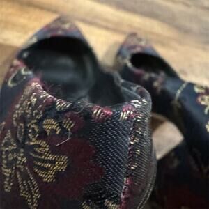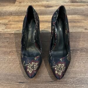 Antonio Melani Embroidered Silk Floral Block Pumps Heels Gold Glam Sz 8.5