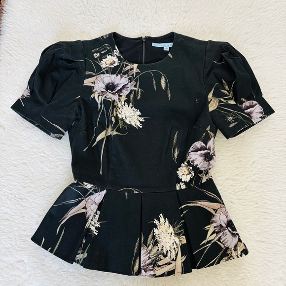 Antonio Melani Floral Black Puff Sleeve Top size 0