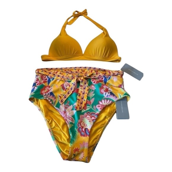 Antonio Melani Floral Mango Jacobean Tie Front High Waisted Bikini Top & Bottom