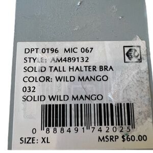 Solid TMolded Halter Swim Top in Mango Padded with Tie Halter