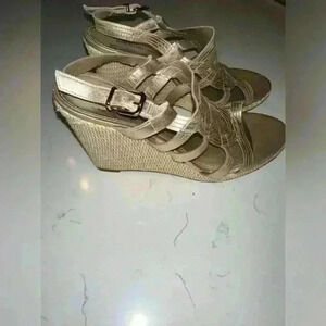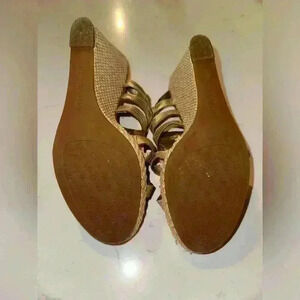 Antonio Melani Gold Strap Platform Wedge Espadrilles Sandals Sz 7 Shoes