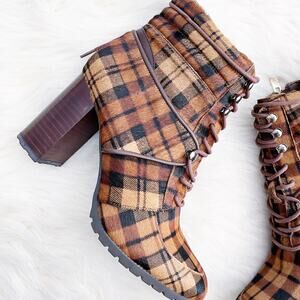 cabincore, mountain chic, rustic glam, plaid perfection, fall style goals, woodland wanderer, country luxury, preppy edge, heritage plaid, lodge life, plaid boots, heeled booties, chunky heel trend, pattern play, statement boots, winter fashion, fall fashion, fall footwear, cozy season style, elevated outdoors, plaid obsession