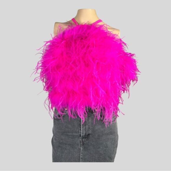 Antonio Melani Hot Pink Feather Crop Top Size 8 READ CONDITION/CALLOUT