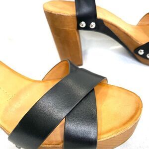 Antonio Melani Leather Block Heeled Platform Sandals Size 9 Catalyni