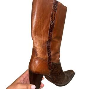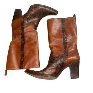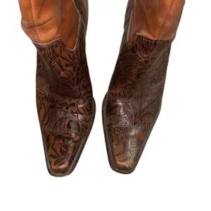 Antonio Melani Leather Embossed Rose Cowgirl Western Heeled Boots Women’s 7.5