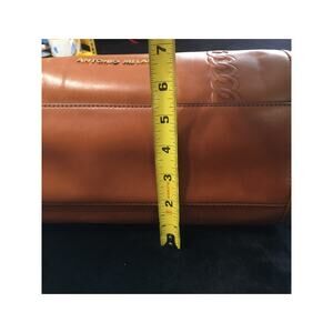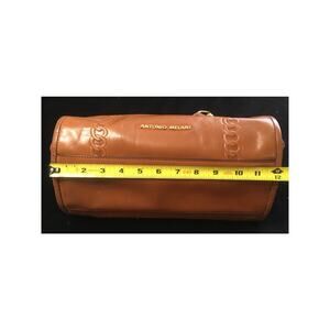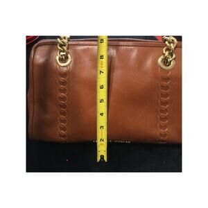 Antonio Melanie brown handbag outside magnetic pocket the width of the purse gold chain and leather straps. Two sections on the inside divided by a zippered pocket, two slip pockets on one side, zipper pocket on the other. This bag is in excellent condition, real leather with some slight scuffs, making it more authentic.