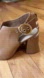 Antonio Melani Leather Tan Women's Heeled Sandals w Buckle Strap