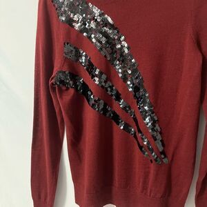Antonio Melani Maroon Red with black sequin wool blend sweater Size M