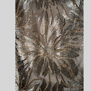 • Color: Metallic gold and silver floral on taupe/neutral base