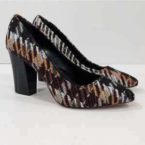 Antonio Melani Multicolor Tapestry Tweed Pumps Shoes Pointed Toe Block Heel 10M