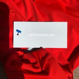 Antonio Melani, bikini bottom, high waist, tie front, full coverage, red swimwear, NWT, new with tags, women’s swim, summer fashion, stylish bikini, flattering fit, size XL, beachwear, trendy swimwear, vacation style