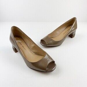 Antonio Melani Peep Toe Patent Leather Studded Block Heels Size 7.5